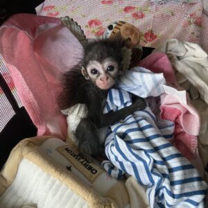 Spider Monkey For Sale communicate their intentions and observations using postures and stances, such as postures of sexual receptivity and of attack. When a spider monkey sees a human approaching, it barks loudly similar to a dog. Their hair is coarse, ranging in color from ruddy gold to brown and black, Spider Monkey For Sale white in a rare number of specimens. The hands and feet are usually black. Heads are small with hairless faces. The nostrils are very far apart, which is a distinguishing feature of spider monkeys. Click Here to Buy Or Adopt Monkey