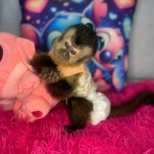 The capuchin monkeys are New World monkeys of the subfamily Cebinae. They are readily identified as the “organ grinder” monkey, and have been used in many movies and television shows. The range of capuchin monkeys includes some tropical forests in Central America and South America as far south as northern Argentina. The Capuchin Monkey belongs to the New World Organization. They only live in the trees and they only are active during the day. Night time is for hiding well from predators while they are able to get plenty of rest. They are considered to be the most intelligent of New World Monkeys. The Capuchin Monkey For Sale are active during the day searching for food up in the trees and only going to the ground for water when needed. At night, they will wedge themselves among the branches to safely sleep.